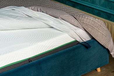 Закрывает спальную поверхность и боковые стороны матраса, четко фиксируется и не сползает, легко одевать и снимать.