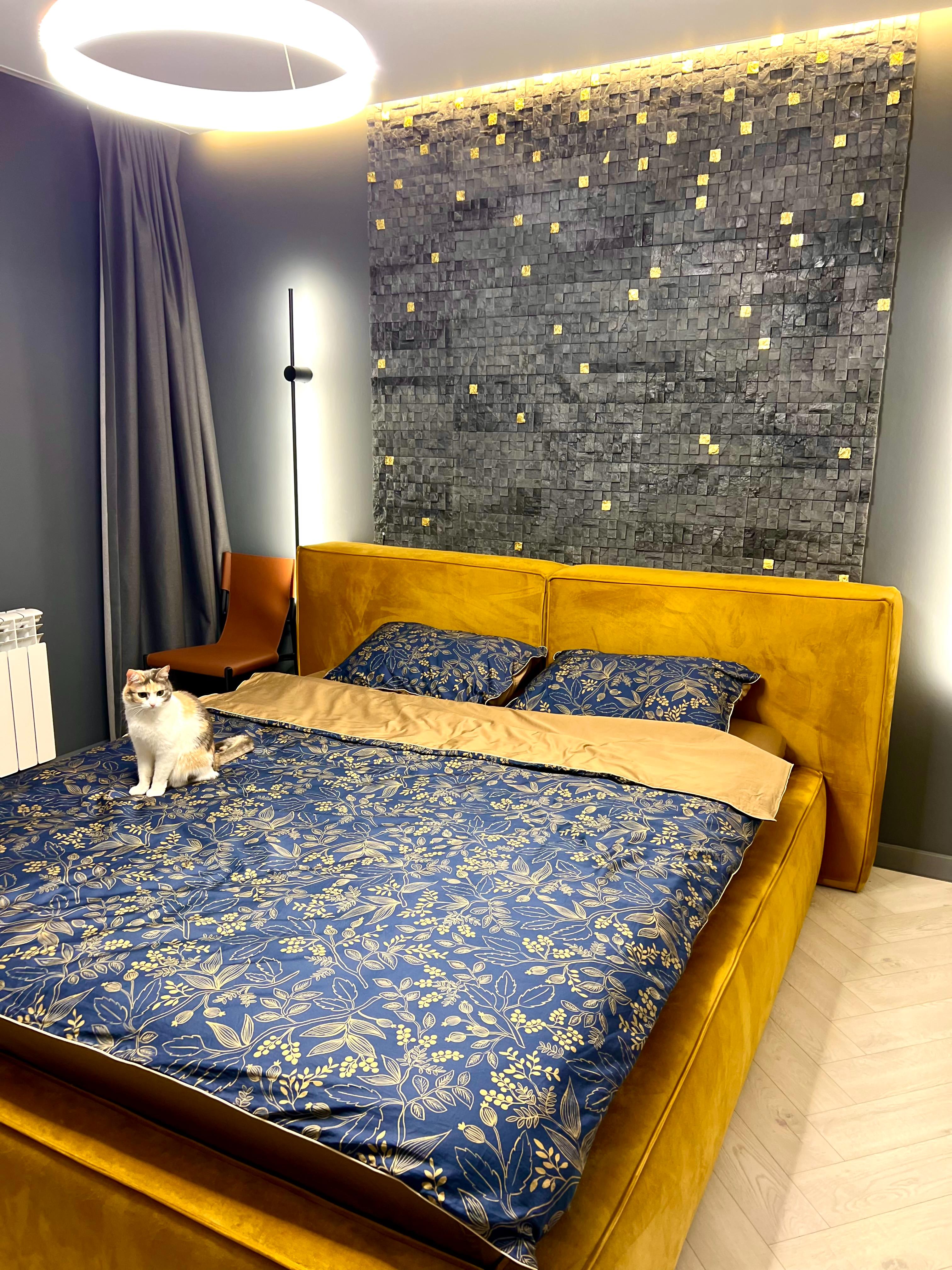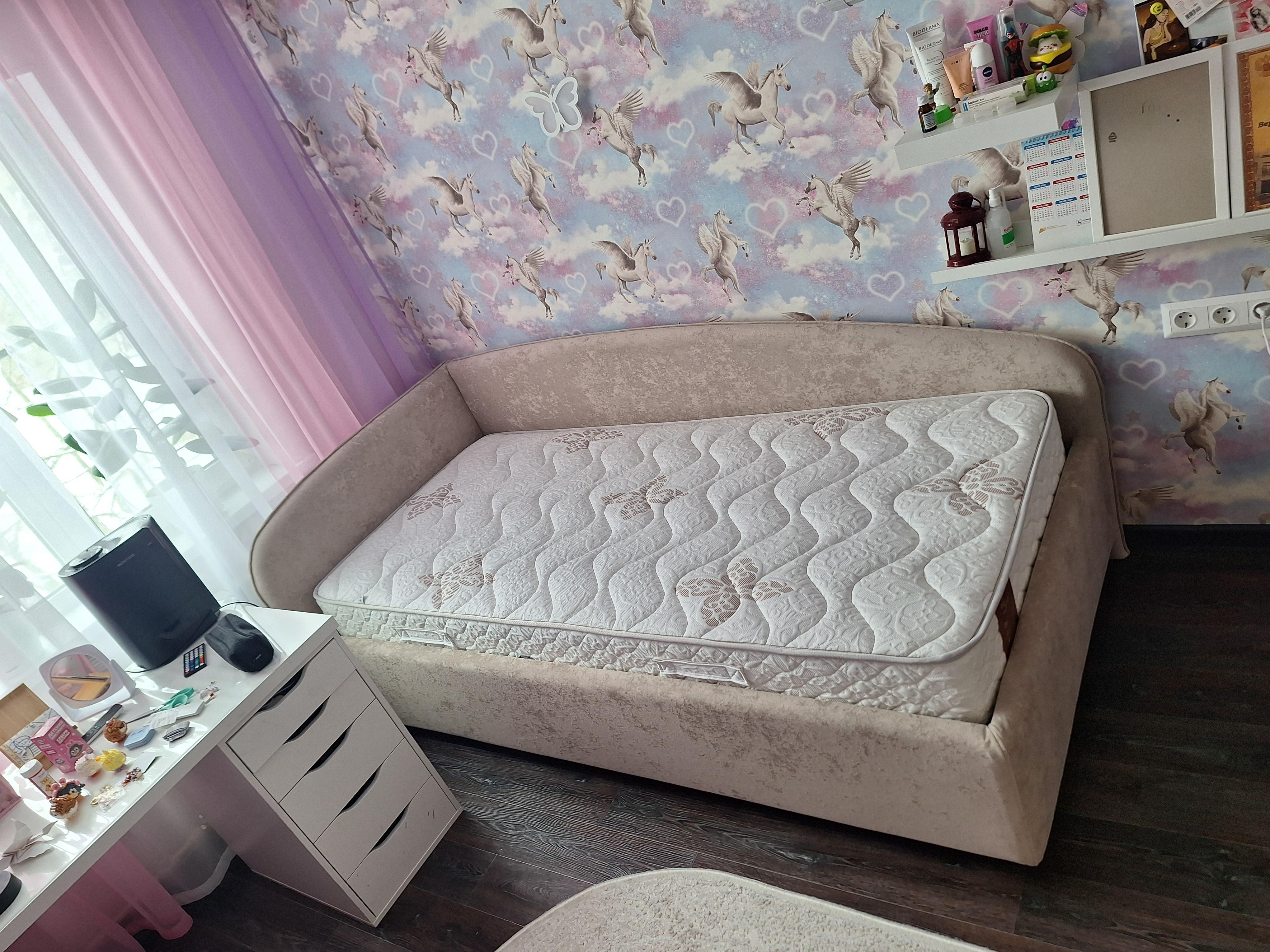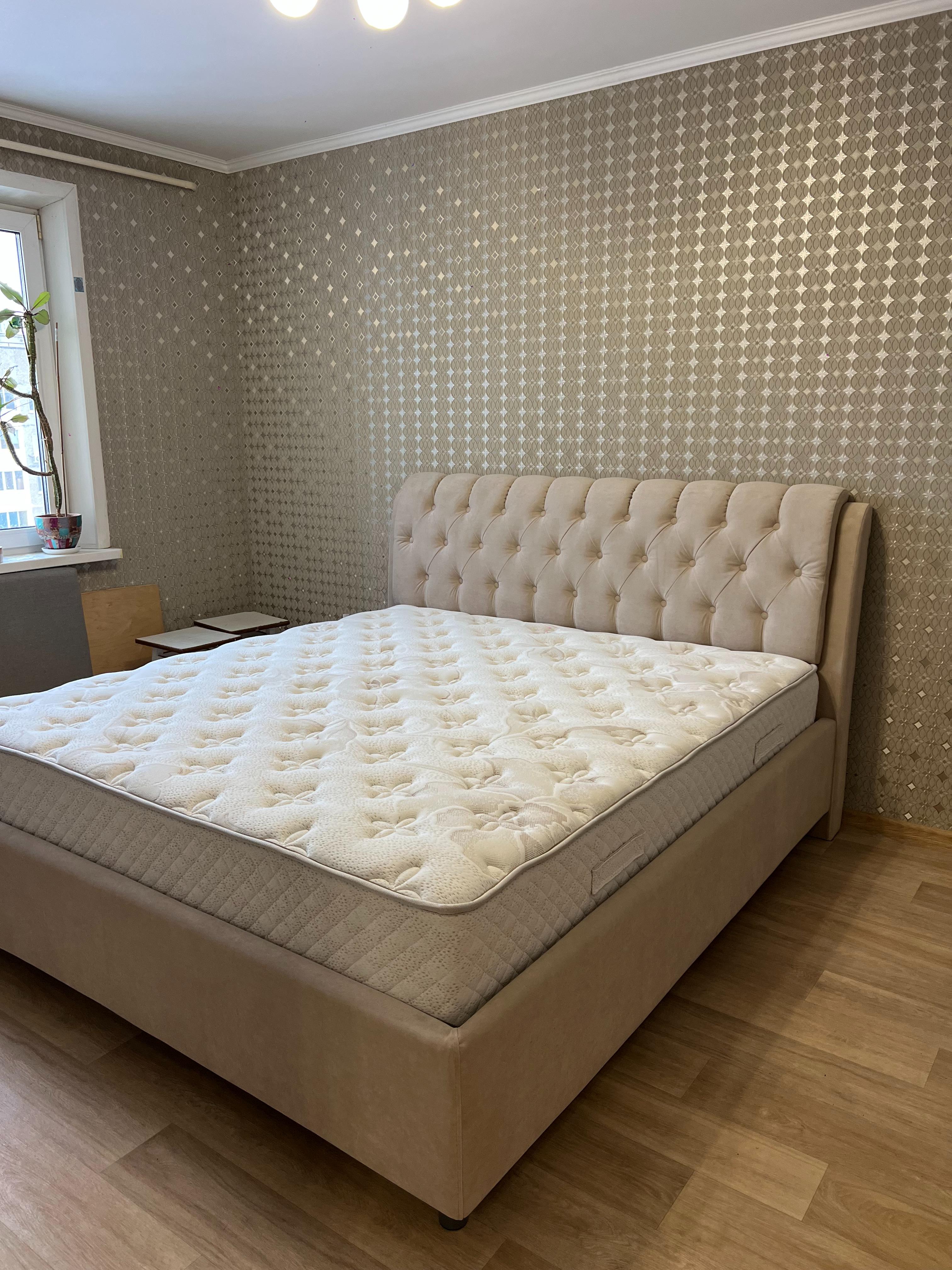 Кровать очень стильно выглядит, прям как из Pinterest, давно такую искала. Долго выбирала и остановилась на этом экземпляре. В приоритете был подъемный механизм, большой ящик, мягкая основа. И большая спинка со стороны головы. Отличная ткань, всё крепкое и надёжное. Комплектом к кровати взяли матрас. Просто идеальный, прошит аккуратно, чистый, соответствует всему заявленному, стал любимым местом семьи. Этикетка производителя на месте, всем советую такой матрас, совсем не пожалела, что купила такое спальное место.